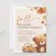 Célébrez la maman d'être avec cet automne dans Love Boho Teddy Bear Invitation Baby shower d'automne. Doté d'un ours en peluche douillet, de citrouilles d'aquarelle, de feuilles en chute et de tons chauds en automne, cette invitation sucrée donne le ton d'un baby shower saisonnier rustique. Idéal pour un enfant neutre ou Thanksgiving sprinkle.