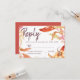 Fall in Love avec cette carte RSVP de mariage chic et moderne d'automne avec une élégante calligraphie manuscrite et typographie classique, et une touche de citrouille et de feuilles d'automne dans des couleurs chaudes d'or et d'orange d'automne. Le dos de la carte de réponse est en rouge feuille automne. Conçu exclusivement pour vous par Happy Dolphin Studio. Si vous avez besoin d'aide ou de produits correspondants, veuillez nous contacter à happydolphinstudio@outlook.com . Conçu exclusivement pour vous par Happy Dolphin Studio.