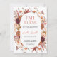 Invitation à la douche nuptiale de style bohème moderne avec des fleurs d'aquarelle et des feuilles de chute dans les tons terre comme rouille brun, orange brûlé et terre cuite. Un choix parfait pour les mariages d'automne.