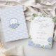 Ce magnifique design présente des fleurs d'hydrangée bleue et votre texte personnalisé. Au verso se trouve une crête aquarelée avec un ruban et des hydrangées. Utilisez le formulaire modèle pour ajouter vos informations.