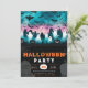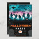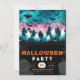 Préparez-vous à une fête parodique avec cette charmante invitation de fête d'Halloween ! La moitié supérieure de la carte est ornée d'une scène de cimetière ludique où des fantômes blancs et noirs géants dérivent parmi les lanternes noires jack-o', les chauves-souris clignotantes et les arbres tordus ornés de toiles d'araignées. Le ciel au-dessus est un mélange captivant de tons verts et roses, ajoutant une touche unique et vibrante à l'ambiance d'Halloween. La partie inférieure de l'invitation contraste avec un arrière - plan noir élégant, présentant des chauves-souris grises, des toiles d'araignées complexes et des marques de sépultures étranges. Le texte est mis en surbrillance d'orange vif et de blanc immaculé, avec la date de votre fête présentée dans un citrouille blanc fantaisiste orné de chiffres oranges, ajoutant une touche festive au design. Retournez l'invitation pour trouver l'arrière, qui poursuit le thème d'Halloween avec un fond noir recouvert d'un assortiment ludique de chauves-souris grises, fantômes espiègles, tombes éffrayantes, lanternes jack-o' brillantes, toiles d'araignées détaillées, arbres lunaires et crânes. Cette conception garantit que votre invitation est à la fois attrayante et étrange de tous les angles. Alliant charme moderne et éléments d'Halloween classiques, cette invitation est parfaite pour préparer le terrain pour une fête amusante et mémorable. Son design unique et festif ravira vos invités et les fera vivre dans l'esprit d'Halloween !
