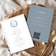 Invitation Cimetière bleu Dusty Monogram Mariage QR Code