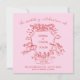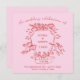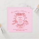 Ces invitations de mariage élégantes, roses et rouges présentent une illustration dessinée à la main d'une crête mariage avec des chérubins et des fleurs. Le temps du mariage passe sur un ruban élégant. Il y a un script manuscrit tendance pour un look vintage fantaisiste et romantique.