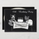 Cinquantième invitations mignonnes et personnalisées d'anniversaire de coutume pour des femmes. La photographie antique lunatique, drôle, noire et blanche de deux/2 mignons, les chatons adorables s'est habillée dans des vêtements de partie se reposant à une table couverte de nappe blanche et noire avec un gâteau d'anniversaire blanc avec des bougies sur un arrière - plan noir simple. C'est une photographie vintage originale de deux chats attendant pour manger leur gâteau, une invitation parfaite d'anniversaire pour tous les amoureux de les chats. Ce sont amusement, original, uniques, des invitations pour vos ciquantième/cinquantième célébrations de fête d'anniversaire et sont entièrement personalizable et sont imprimés/décorés sur les deux côtés/double impression dégrossie/imprimés de deux côtés. Si vous avez besoin de n'importe quelle aide en customisant votre produit svp me contactez par mon magasin et je serai heureux d'aider. Tapis de perle par le ©Hazel Kinvig-Paul www.design-a-dream.co.uk.