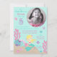 Petite carte d'invitation à 5e anniversaire de sirène avec des créatures sous-marines.