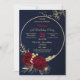 élégantes fleurs bordeaux romantiques et feuilles d'or sur un cercle doré couronnes luxe marine bleu anniversaire invitation Les détails de la parties scintillant sont simulés