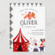 Belle et moderne invitation à l'anniversaire de cirque avec animaux.