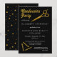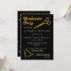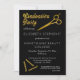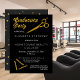 Fête de fin d'études noir et or pour la célébration de votre diplômé de l'école de beauté. Le devant présente des ciseaux dorés et des épingles à cheveux ainsi que le texte « Fête de fin d'études » dans le cadre du design, et le dos présente un fond noir et or avec des points de confettis de différentes tailles. Personnalisez simplement le devant avec les détails de votre fête et ajoutez au panier. Conception de Holiday Hearts Designs (droits réservés).