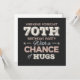 Citation de citations drôles pour les 70 ans avec une phrase humoristique comme Prévisions de week-end Fête des 70 ans avec une chance de câlins. Joyeux 70e anniversaire pour célébrer l'anniversaire de vos proches, par exemple votre grand-mère, grand-père, père, mère, oncle ou tante. Idée cadeau pour les 70 ans.