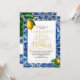 Des citrons de Bismillah islamiques sur un arrière - plan en carrelage bleu et blanc de style méditerranéen. Les informations sont facilement changées en votre propre invitation de mariage personnalisée. Le monogramme est facilement changé pour vos initiales Citron et couleurs bleues.