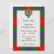 Le badge de crête Clan Fraser entouré d'une courroie et boucle sur l'arrière - plan tartan. Texte personnalisé des deux côtés.