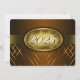 Invitation de graduation Brown et dorée avec rayures brun clair et foncé et un ruban doré qui traverse pour montrer l'année de graduation. Le dos de la carte est brun avec une police d'or clair pour que les gens puissent remplir les annonces de graduation.