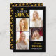 Classe de 2025 médaille d'or et de noir à l'invitation de la fête de la casquette de graduation. Il présente nos photos, votre texte en or sur un arrière - plan noir et une casquette de graduation. L'arrière comprend les détails de la fête dans un cadre avec une bordure motif faite de plafonds de graduation.