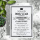 Des invitations de réunion de classe dans les couleurs de votre école de noir et argent/blanc, que vous personnalisez avec tous vos détails de célébration pour votre grand événement de réunion. Ce design comprend un arrière - plan léger avec du texte plus foncé, des accents d'angle doré et un capuchon et un tassle bordant les détails de l'événement. Votre nom d'école est bien représenté sur une bannière en or au centre.