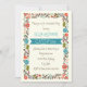 Classe de 2025 turquoise et rouge à la frontière fleurie invitation de la fête de graduation avec une illustration d'une bordure florale faite de jolies fleurs sauvages fantaisistes dans les tons de feuilles turquoises et rouges et vert olive et marron sur arrière - plan ivoire. Texte brun et turquoise. Ce design modèle mignon, moderne, élégant et élégant est entièrement personnalisable et est parfait pour une fête de remise de diplômes pour les filles.