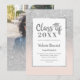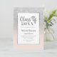 Une douche à parties scintillant fausse argent moderne, assez chic et élégante invitation à la remise des diplômes avec topper casquette argent mignon et calligraphie script cool avec parties scintillant argent scintille ombre et rose pâle pastel doux, ajoutez votre photo à l'arrière.