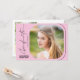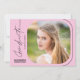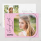 Cette invitation à la remise des diplômes en écriture moderne comprend du texte de style manuscrit et une photo carré avec des angles arrondis sur un arrière - plan rose clair. L'arrière offre une deuxième photo verticale et un texte personnalisé pour ajouter les détails de l'invitation de votre parti.