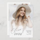 Classe minimaliste de 2025 graduation faire-part et invitation comprennent script chic moderne et photos devant et derrière, simple et élégant. Personnalisez-le avec vos propres photos et informations sur les grandes fêtes.
