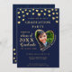 Créez une invitation unique de remise de diplômes photo pour la classe de 2025 diplômé conçu dans les couleurs bleu marine et or décoré de coeurs. Les modèles facilitent la personnalisation des invitations avec vos données et le téléchargement d'une photo. Le nom et le nom de famille sont modifiés séparément pour avoir cette vue courbe élégante. Veuillez utiliser le modèle pour télécharger votre photo pour avoir la même image en forme de coeur du diplômé. Essayez quelques photos pour choisir la couleur qui convient le mieux à une image en forme de coeur.
