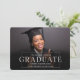 Cette cérémonie de remise des diplômes a l'allure d'élégance moderne et vous pouvez ajouter la photo et le nom du diplômé à l'avant, faisant de cette cérémonie de début moderne et branché invitation un grand choix à l'invitation de la famille de la grade et des amis pour assister au grand événement.