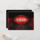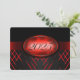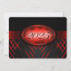 Invitation de graduation rouge et noir avec rayures rouge clair et foncé et un ruban rouge qui traverse pour montrer l'année de graduation. Le dos de la carte est noir avec une police rouge clair pour que les gens puissent remplir les annonces de remise de diplômes.