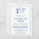 2023 Personnalisez cette invitation de Royal Blue and White Stylish Graduation Party sur arrière - plan blanc avec votre message et les détails. Cette invitation élégante comprend une photo sur le dos avec une typographie de script mignonne et élégante pour le Lycée spécial ou le Diplôme de Collège.