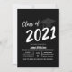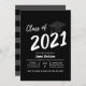 Invitation classique à la fête de graduation en noir et blanc avec casquette de graduation.