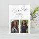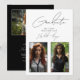 Célébrez le succès de votre diplômé avec cette élégante invitation de remise de diplômes moderne en noir et blanc. Le devant est doté d'une typographie sophistiquée avec espace pour deux photos personnelles, tandis que le dos met en valeur les détails de la fête, ainsi qu'une photo élégante du diplômé. Le design minimaliste, associé à une écriture manuscrite épurée, crée un look intemporel et raffiné. Parfait pour les diplômes du secondaire et du collégial, cette invitation est entièrement personnalisable pour convenir au style unique de votre diplômé.