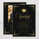 Celebrate a remarkable academic milestone with this classic black and gold graduation invitation, designed with timeless elegance and formal sophistication. Featuring ornate gold script typography, decorative corner accents, and a graduation cap emblem, this invitation makes a striking statement for a high school or college graduate.