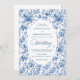 Invitation Classic Blue Toile de Jouy Roses Timeless Wedding