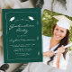 Cette invitation classique et moderne à la remise des diplômes comporte du texte blanc dans une mince bordure rectangulaire blanche sur un arrière - plan vert foncé. Le mot "Graduation" et le nom du diplômé apparaissent dans une police d'écriture moderne décontractée sous une paire de casquettes de tableau de mortier blanc. Customisez l'invitation avec les détails de la fête, et remplacez l'exemple d'image au dos par une photo de votre grade.