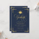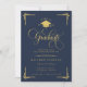 Celebrate a remarkable academic milestone with this classic navy blue and gold graduation invitation, designed with timeless elegance and formal sophistication. Featuring ornate gold script typography, decorative corner accents, and a graduation cap emblem, this invitation makes a striking statement for a high school or college graduate.