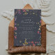 Cette invitation classique d'anniversaire de mariage de 50 ans bleu sauvage est parfaite pour un événement moderne. Le design présente des fleurs sauvages jaunes, violettes et blanches avec du feuillage sur un fond aquarelle rose et vert. Changez le nombre pour célébrer n'importe quel anniversaire de mariage.