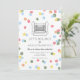 Invitation de Bounce House avec le design de la maison classique The White Bounce House avec des points d'aquarelle multicolores. Les objets vendus par The White Bounce House sont recommandés pour les événements à thème de la maison de rebond et sont conçus pour compléter toutes les options de location de The White Bounce House.