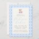 Célébrez l'arrivée d'un précieux bébé avec notre invitation intemporelle pour une fête prénatale, ornée d'un charmant ours en peluche et d'un motif classique de vichy bleu. Cette invitation dégage de la chaleur et de la nostalgie, parfaite pour accueillir le nouveau membre de la famille. Les douces teintes de vichy bleu évoquent un sentiment de tradition et d'innocence, tandis que l'ours en peluche ajoute une touche adorable de douceur. Avec son design classique et son sentiment sincère, cette invitation donne le ton pour une joyeuse réunion remplie d'amour et d'anticipation.