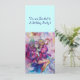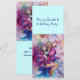 Coloré, fantaisiste, drôle clown rose jouant du clairon avec un hibou expressif et des notes musicales joyeuses, fleurs, feuilles en rouge vif, fuchsia, violet, bleu, blanc, peinture à l'aquarelle par Bulgan Lumini (c)
