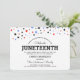 Célébrez la fête du 11 juin ! Ces invitations ont un design minimal mais significatif sur le thème de la Junetten. Au sommet se trouve un amas d'étoiles représentant les États-Unis. Au lieu de cela, ces étoiles sont dans une palette de couleurs rouge, noir et bleu. Tous les éléments de cet élément sont déverrouillés et personnalisables, y compris la couleur marine profonde solide de la toile de fond. Avec cela à l'esprit, amusez-vous à être créatif et à en faire votre propre.