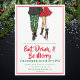 Levez un verre à la saison des Fêtes avec cette invitation festive festive et amusante de Noël! Doté d'un couple élégant habillé pour impressionner - la femme en robe rouge chic avec des talons noirs et l'homme en pantalon Père Noël ludique avec un blazer noir tenant une bière - ce design donne le ton parfait pour une nuit de joie. Personnalisez avec vos détails de fête pour des vacances qui ne manqueront pas de vous faire oublier !