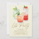 Invitations de fête d'anniversaire pour adultes avec des illustrations d'aquarelle de cocktails colorés et le texte du script "Let's Party". Le texte de l'anniversaire peut être modifié pour n'importe quel événement d'été ou cocktail. Police couleur or sur un arrière - plan neutre en ivoire.