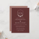 Monogramme botanique Faire-part de mariage Bourgogne. Le devant a un beau monogramme fleuri et verdoyant avec une formulation d'invitation formelle