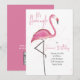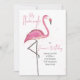 Cette conception présente un flamant rose avec un nom personnalisé, un flamant rose mignon d'anniversaire rose, des invitations à la fête flamingle, un site Web de code QR événement Facebook en ligne, une URL Web de réponse scannable, une police de caractères calligraphique stylée tendance, un style de texte calligraphique moderne, une conception chic et girly rose aquarelle, invitation à une fête en plein air, un oiseau tropical de la faune de l'île de la plage, un script décoratif stylisé créatif