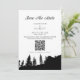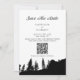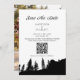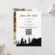 Carte d'invitation de mariage avec code QR à Mountain Pin Tree. Personnalisez ce design noir et blanc avec vos informations personnelles.