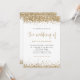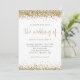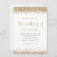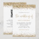 Bordures de confettis pailletés or Script Mariage. Un ensemble de typographie élégant est en or pour le titre principal Le Mariage de qui complète le reste du texte que vous pouvez facilement personnaliser, avec des bordures de confettis pailletés or en haut et en bas et également au dos. Ajoutez votre code QR à votre site web de mariage au dos fait de ceci une option pratique pour vos invités pour répondre et voir tous les détails sans avoir besoin de cartes de réponse et de détails séparées.
