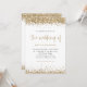 Bordures de confettis pailletés or Script Mariage. Un ensemble de typographie élégant est en or pour le titre principal Le Mariage de qui complète le reste du texte que vous pouvez facilement personnaliser, avec des bordures de confettis pailletés or en haut et en bas ainsi que sur le dos. Ajoutez votre code QR à votre site web de mariage au dos, cela en fait une option pratique pour que vos invités répondent et voient tous les détails sans avoir besoin de cartes de réponse et de détails séparées.