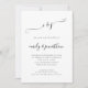 Faire-part de mariage Code QR Script Élégant Noir et Blanc ou de n'importe quelle couleur. Avec un code QR renvoyant vers votre site web de mariage au verso pour que vos invités puissent répondre et voir tous les détails en ligne sans avoir besoin d'insertions séparées. Votre code QR sera généré automatiquement pour mettre à jour l'exemple de code dans le design, lorsque vous changerez simplement l'URL d'exemple dans le modèle avec l'URL de votre propre site web de mariage. Un design entièrement personnalisable avec vos initiales en haut dans un script élégant avec fioritures. Personnalisez facilement le texte, vous pouvez également cliquer sur "Modifier plus" pour changer les couleurs du texte et du fond si vous le souhaitez.