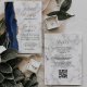 Invitation Code QR de mariage en marbre d'agate or bleu marin