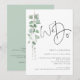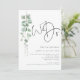 Faire-part de mariage avec code QR Moderne Eucalyptus. Ajoutez votre code QR à votre site web de mariage au verso, cela en fait une option pratique pour que vos invités puissent répondre et voir tous les détails sans avoir besoin de cartes de réponse et de détails séparées. Style botanique minimaliste, avec un ensemble de texte manuscrit pour "Nous nous marions" et le reste du texte que vous pouvez facilement personnaliser. Une branche élégante de feuilles d'eucalyptus aquarellées court le long du côté gauche.