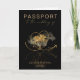 Carte du monde moderne et élégant Invitation Mariage Destination, comme passeport avec parties scintillant palmiers et coeur. Ajouter votre code QR