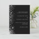 Célébrez votre amour avec nos invitations de mariage intemporelles et élégantes. Conçues sur des cartons de haute qualité, ces invitations noires et blanches classiques sont magnifiquement rehaussées d'un décor de parties scintillant en faux argent, ajoutant une touche pétillante à votre journée spéciale. Lettres de couleur blanche. Retour : ajoutez votre lien/url à votre site Web mariage pour plus d'informations et/ou RSVP