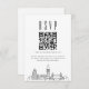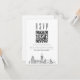Une carte de code rsvp QR minimaliste de mariage avec une belle silhouette stylisée représentant la ville de Londres. Remplacez le code QR par un lien vers votre site Web pour faciliter la réponse à votre événement mariage pour vos futurs invités.